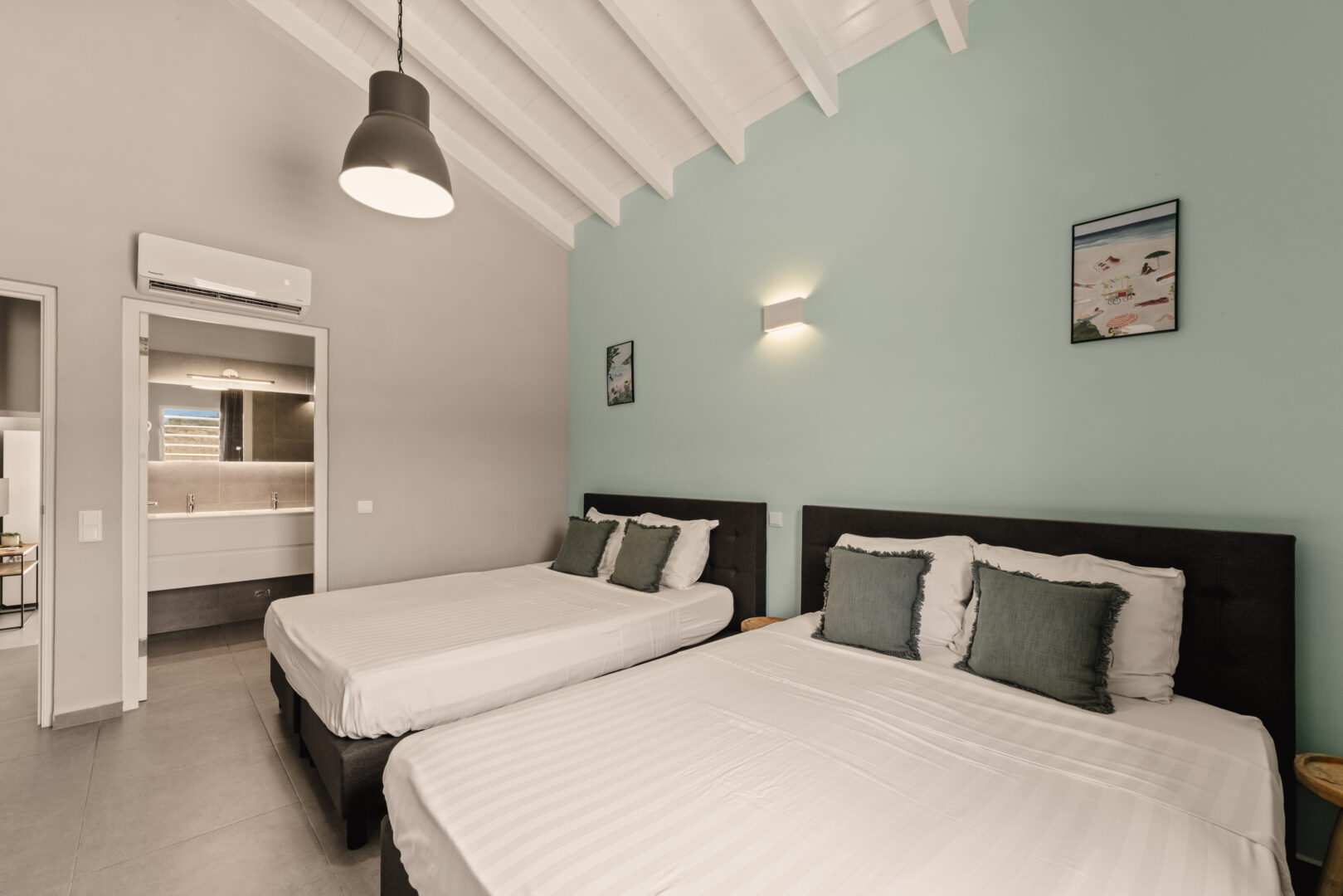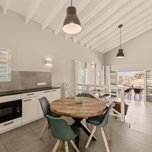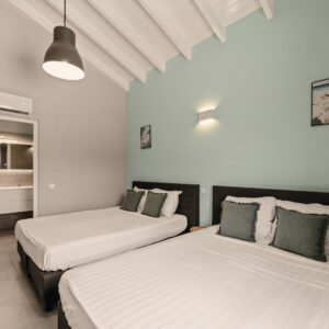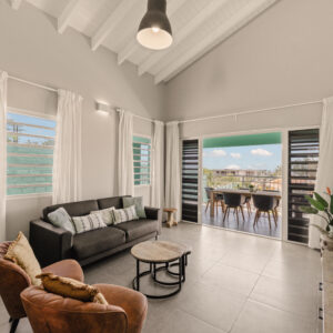 Onze Deluxe bungalow is de meest uitgebreide accommodatie van Bon Bini Resort. Met een moderne inrichting, twee ruime slaapkamers, twee badkamers en een royale veranda biedt deze bungalow alles voor een luxe vakantie op Curaçao op slechts 2 minuten lopen van Mambo Beach. Ideaal voor gezinnen, twee stellen of gasten die gewoon het beste willen.